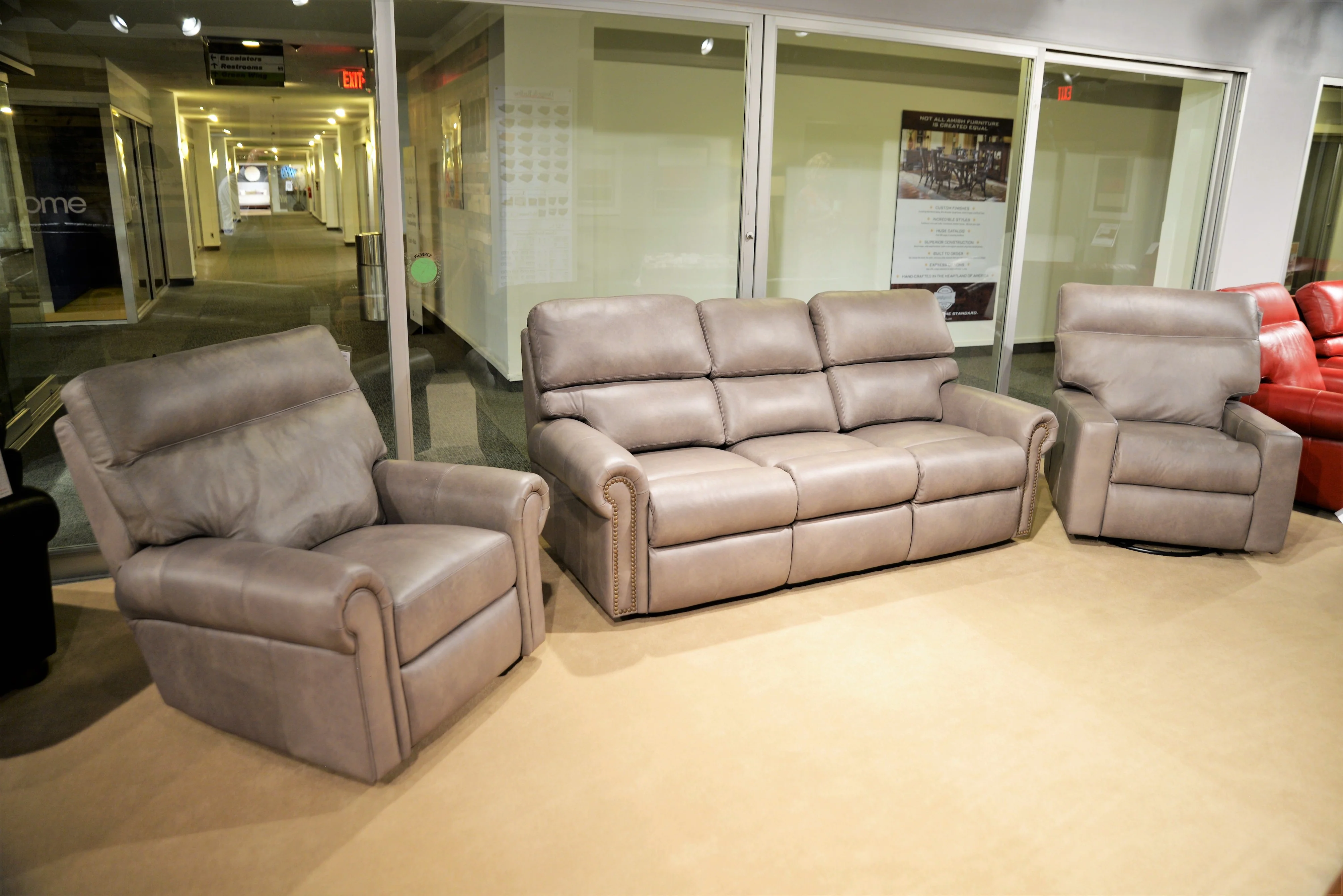 The Crawford is one of many styles that recline. Options are too numerous to mention, however, it's obviously a very clean look and very comfortable. A taste of what you can do with this style is to get any of the offered reclining sku's in a stationary version as well. You can add power, have your reclining seats be motorized to recline.